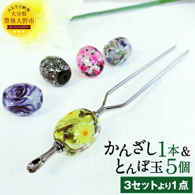 【ふるさと納税】かんざし1本 とんぼ玉5個セット(凛・遥・彩) いずれか1セット ガラス 硝子 簪 トンボ玉 浴衣 髪飾り ヘアアクセサリー 和装小物 着物 花 かわいい おしゃれ 化粧箱 手作り ギフト 受注生産 九州産 国産 送料無料